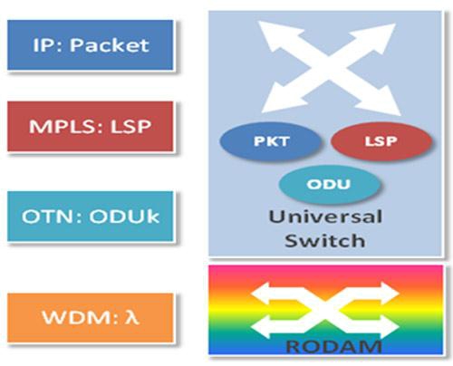 图 1 分组 OTN 设备功能模型 传统的 OTN 设备基于电路交换平台实现,只能对业务进行刚性的汇聚和调度,如果客户侧为非满速率业务,将对网络资源造成一定程度的浪费,而分组 OTN 设备可以认为是对传统 OTN 设备的增强,具备了更强的灵活性,除了对业务进行刚性的汇聚和调度(OTN 功能),还可以对客户侧非满速率的业务进行弹性的汇聚和调度(基于分组功能,统计复用特性)。 对于 OTN 业务,接入分组 OTN 设备后,先在客户侧 OTN 板卡中进行 OTN 成帧处理,之后将 ODU 进行信元切片。客户侧 OTN 板卡产生的信元经过背板送到通用交叉矩阵统一进行信元交换,之后通过背板送往线路侧单板。在线路侧单板中,由信元恢复到 ODU,之后进行 OTN 的成帧处理和封装。 对于分组业务,接入分组 OTN 设备后,先在客户侧 PTN 板卡中进行分组处理,例如伪线仿真(PW)处理、LSP 处理等,之后进行信元切片。客户侧 PTN 板卡产生的信元经过背板送到通用交叉矩阵统一进行信元交换,之后通过背板送往线路侧单板。在线路侧单板中,由信元恢复到分组数据,之后进行分组处理,然后完成分组业务到 OTN 的封装。 分组 OTN 的线路侧板卡可以有三种,一种是线路侧分组板卡,这种单板只能处理分组业务,分组业务处理之后直接封装到高阶 ODU,之后封装到 OTUk 上线路传输;另一种是线路侧混合板卡,这种单板既可以处理分组业务也可以处理 OTN 业务,分组业务可以封装到低阶 ODU,之后与 OTN 业务一起映射到高阶 ODU,再封装到 OTUk 上线路传输,第三种则是线路侧 OTN 板卡,只处理 OTN 业务。 分组业务在网络中以 ODU 传输,在不需要下路进行分组处理的站点,直接进行 OTN 交叉,此时中间站点可采用线路侧 OTN 单板;在需要分组处理的站点,需要在线路侧分组板卡或混合板卡中将分组业务从 ODU 解出,之后进行分组处理和分组交换。 结论:分组 OTN 除了进行波长级/频谱级的调度以外, 还可以进行 ODUK/PKT 的 调度,比传统 OTN 设备的功能更为丰满和完善。 三、分组 OTN 的应用场景 分组 OTN 可以实现全业务的统一承载和调度,主要的应用场景包括宽带业务承载,大客户业务接入和路由器 Bypass。 √ 宽带业务承载 由于宽带业务的多样性,OLT/DSLAM 上行端口经常处于非满速率状态,可以利用分组功能实现 OLT/DSLAM 上行带宽的二次收敛,减轻对 SR/BRAS 的端口压力,解决宽带业务高效承载、组网保护协调等问题。 √ 大客户业务接入 分组 OTN 解决高价值大客户多种业务的接入,包括政府、金融证券、企业等。分组 OTN 可为日益增多的以太网专线和专网业务提供电信级分组传送与汇聚功能,为政府、银行、证券等集团客户提供其所看重的物理隔离、带宽保证和低时延等 SLA 保障。 √ 路由器 Bypass IP 流量的飞速增长,特别是是低附加值的 INTERNET 流量的激增,给骨干承载网 带来了越来越大的扩容压力和运营压力。 现阶段骨干承载网上的 IP 流量承载在核心路由器上,IP 流量的增长导致对核心路由器的流量需求剧增,但与此同时,经过核心路由器的 IP 流量中,多数流量只需要路由器进行流量传送而无需 IP 层处理,浪费了大量路由器资源,因此通过旁路核心转发路由器的流量能够有效降低 IP 层的投入。相比较路由器网络,光传输网络在传输速度、性能和价格上更有优势,利用分组 OTN 的分组处理能力,可以实现 VLAN/LSP 的识别和适配,区分旁路业务和下路业务, 之后再封装到 ODUK/ODUFLEX 进行 ODUK 级别的交叉调度和处理。 四、分组 OTN 带来的客户利益 分组 OTN 集成和融合了 L0、L1 和 L2 分组传送层的功能,可完成两个或多个平面的功能,极大简化网络层次和网络复杂度;另一方面,可减少设备种类,节省机房空间,减少机房电源、配套资源等方面的支出,可有效的降低运营商 CAPEX 和 OPEX。 五、ZXONE 9700 分组 OTN 设备简介 中兴通讯基于 iOTN 平台推出了面向 100G 和超 100G 的全新统一交换分组 OTN 设 备 ZXONE 9700 系列产品,支持 10G/40G/100G 传输速率,支持未来升级到 400G 和集群,可实现 14.4/7.2T ODUk 的大容量电层交叉和 10G/40G/100G/400G 波长的光层交叉及分组交换功能,适用于骨干核心层以及本地/城域网络,可充分满足运营商对大颗粒数据业务的透明传输、灵活调度、汇聚处理以及对业务管理监控的需求。 六、小结 分组 OTN 设备即具备 OTN 设备的所有特点,又集成了分组功能,可实现对各种业务的统一接入、交换、传送,实现对刚性管道的柔性化处理,提高带宽利用率,大幅度缓解全业务 IP 化带来的巨大带宽压力,做到针对 IP 流量的智能化疏导,顺应了业务 IP 化和网络扁平化、融合化的趋势,适应未来电信网发展趋势。 |
